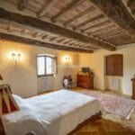 The house is built over the remains of what was originally a 13th-century watchtower which was expanded and converted in the 16th century into what is locally called a ‘noble farmhouse’. The fortification was later abandoned and it was used as a source of materials to build the farmhouse. The building has been recently restored to preserve the typical features of the Umbrian farmhouses such as the beautiful stone walls, wooden beams and terracotta tiles on all floors. The original crested and dated fireplace was installed when the property was converted in 1597.