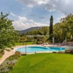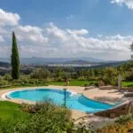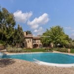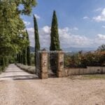 This luxury villa for sale is located in a scenic hillside position in Umbria, offering panoramic views of the historic town of Todi. The property has been carefully renovated using high-quality materials and features five bedrooms, making it ideal as a private residence or an income-generating rental. The villa is set within a 30,000 sqm park that includes a swimming pool, a tennis court, and olive trees.
