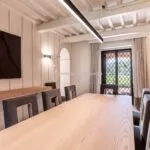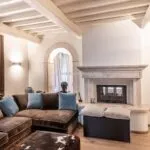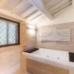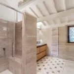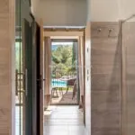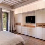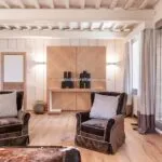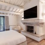 Renovation work was completed in the second half of 2024 under the supervision of architects Clemente Busiri Vici (interiors) and Marta Fegiz (exteriors). The design blends modern features with traditional elements, including white-painted wooden ceiling beams, original terracotta flooring in soft red tones, and white travertine tiles in the bathrooms. The living spaces are painted in light colours to maximize natural light, creating a bright and inviting atmosphere. The kitchen is equipped with high-end Gaggenau appliances.