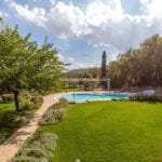 The western section of the property, along the driveway, is planted with olive trees that produce extra virgin olive oil for private use. To the south, the property is bordered by woodland, providing both privacy and seclusion.