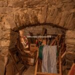 The property is a two-level portion of a farmhouse. The main living area on the ground floor includes a kitchen with a wood-burning fireplace, a frescoed living room that requires some restoration (it has been stabilised to ensure no further loss of detail to the frescoes), two bedrooms, and a bathroom. The lower level features 65 square metres of cellar space.