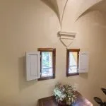 The villa was originally a rural building and was modified in the late 1800s by a noble family from Siena. Period details such as painted façade plaques, carved stonework, and a pietra serena staircase are still present. The building has retained some of its historical charm, although parts of the interior would benefit from modernisation.