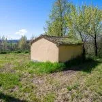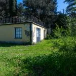 Outbuildings include a 26 sqm shed used for storage and a lemon house measuring 87 sqm, currently serving as a laundry and utility area. The lemon house has a flat roof that functions as a garden-accessible terrace. An adjacent outbuilding is in need of full renovation.