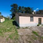 The land extends over roughly 9.1 hectares (22.5 acres) and consists of woodland, open fields, a small olive grove, and an old landscaped area near the villa. A distinctive element of the property is the “roccolo” — a circular installation historically used for capturing migratory birds using nets and decoys. This practice is now illegal, but the structure remains as a record of past rural customs.