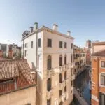 Venice Italy property for sale comprising a restored 174 sqm 3 bed apartment with a terrace on the third floor (elevator) of an elegant building.Views of canals and St Mark’s Square bell tower.