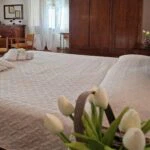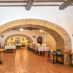 This farmhouse home with Agriturismo is located near the border between Tuscany and Umbria, just outside the town of Città di Castello and along the St. Francis’ Way pilgrimage route. The property has been renovated in recent years while maintaining its original rural character. It currently includes 11 bedrooms and a garden with a panoramic swimming pool.