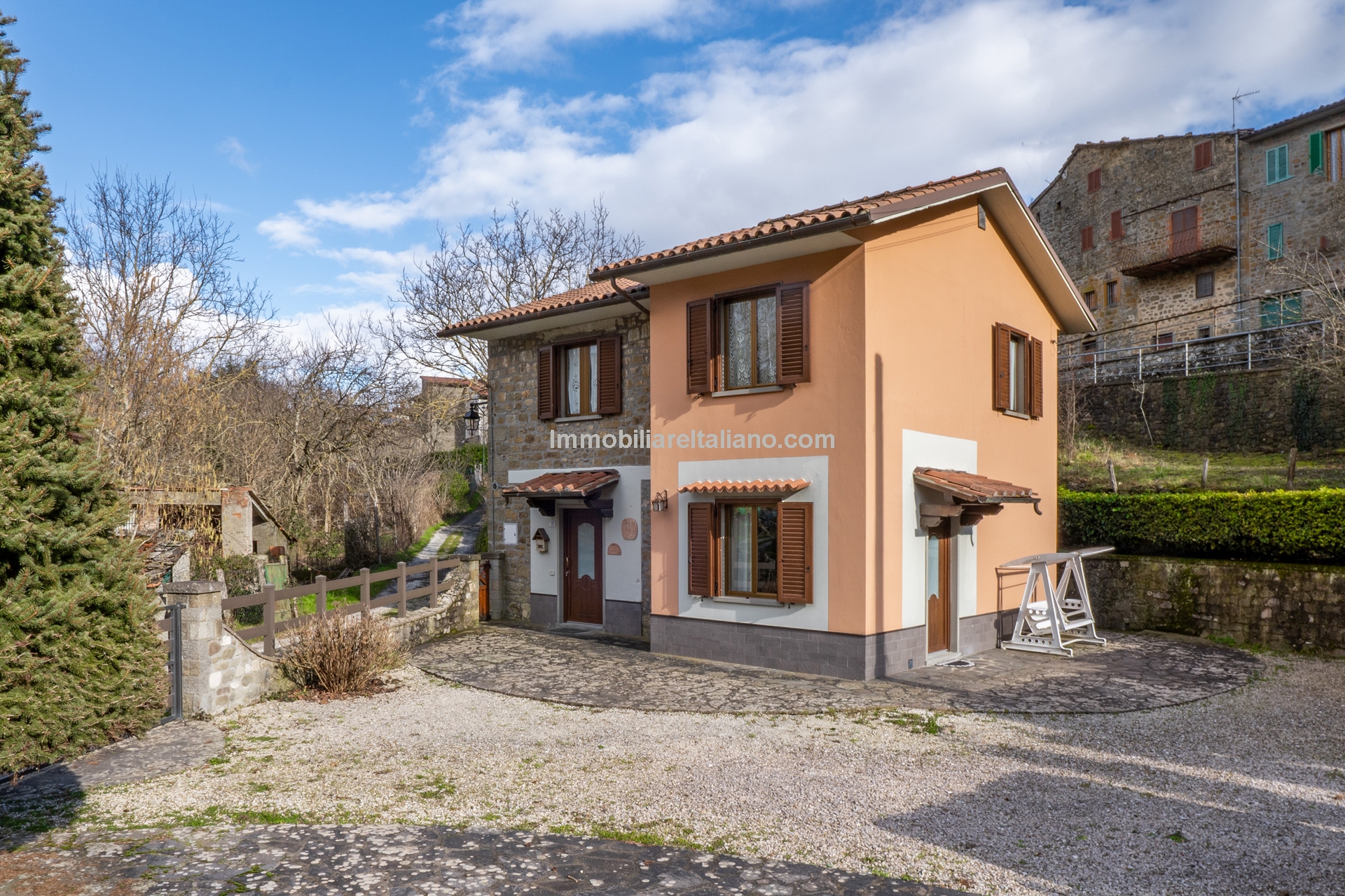 Villa Caprese Michelangelo Tuscany for sale. Restored 3-bedroom rural villa with private garden and bordering a stream. Ideal opportunity to buy a house in Tuscany near Arezzo. Nicely priced.