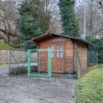 The property is surrounded by approximately 1,148 square metres (0.3 acres) of private garden. A natural stream runs along the boundary, providing privacy and separation from neighbouring properties. Utilities are fully connected, including mains water, electricity, natural gas heating, telephone, and internet, allowing immediate occupation without additional infrastructure work.