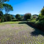 The villa stands on 8,400 sqm (2 acres) of mature gardens, with olive trees, paved terraces, and an automatic entrance gate leading to a tree-lined driveway. The grounds are suitable for adding a swimming pool if desired. Services include supermarkets, schools, and a nearby train station with direct connections to Florence and Rome, all within a few minutes. The A1 motorway is about 25 minutes away, making regional travel straightforward.