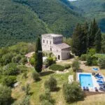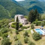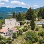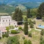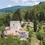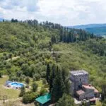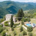 On the Florentine hills, about 25 mins from Florence is this 13th-century medieval watchtower for sale. The tower has been finely restored and converted with a total of 5 bedrooms and 5 bathrooms. It has been divided to make three apartments for a total surface area of 395 sqm and would be ideal for a boutique vacation rental accommodation business thanks to its facilities and proximity to Florence. Standing on 4.5 hectares of land which include a terraced garden, an 8 × 4 m pool and 165 olive trees.
