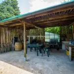 An 8 × 4 m swimming pool has been placed not far from the tower. All around the basin is a wooden sunbathing area that offers incredible views of the surrounding countryside.