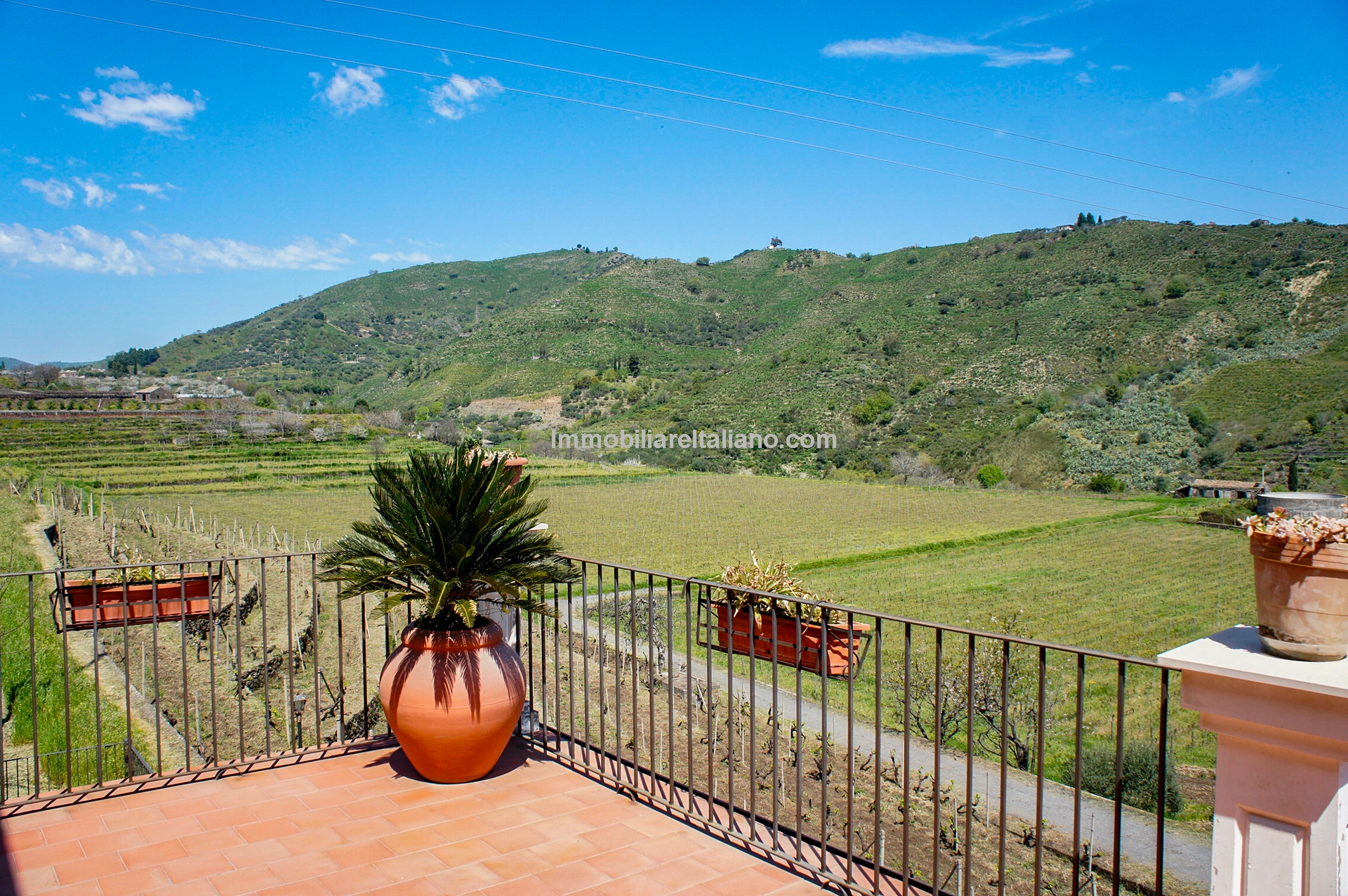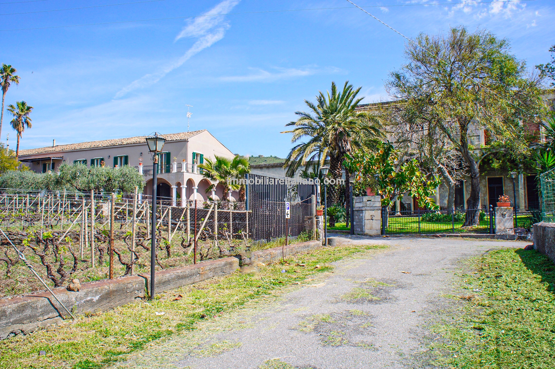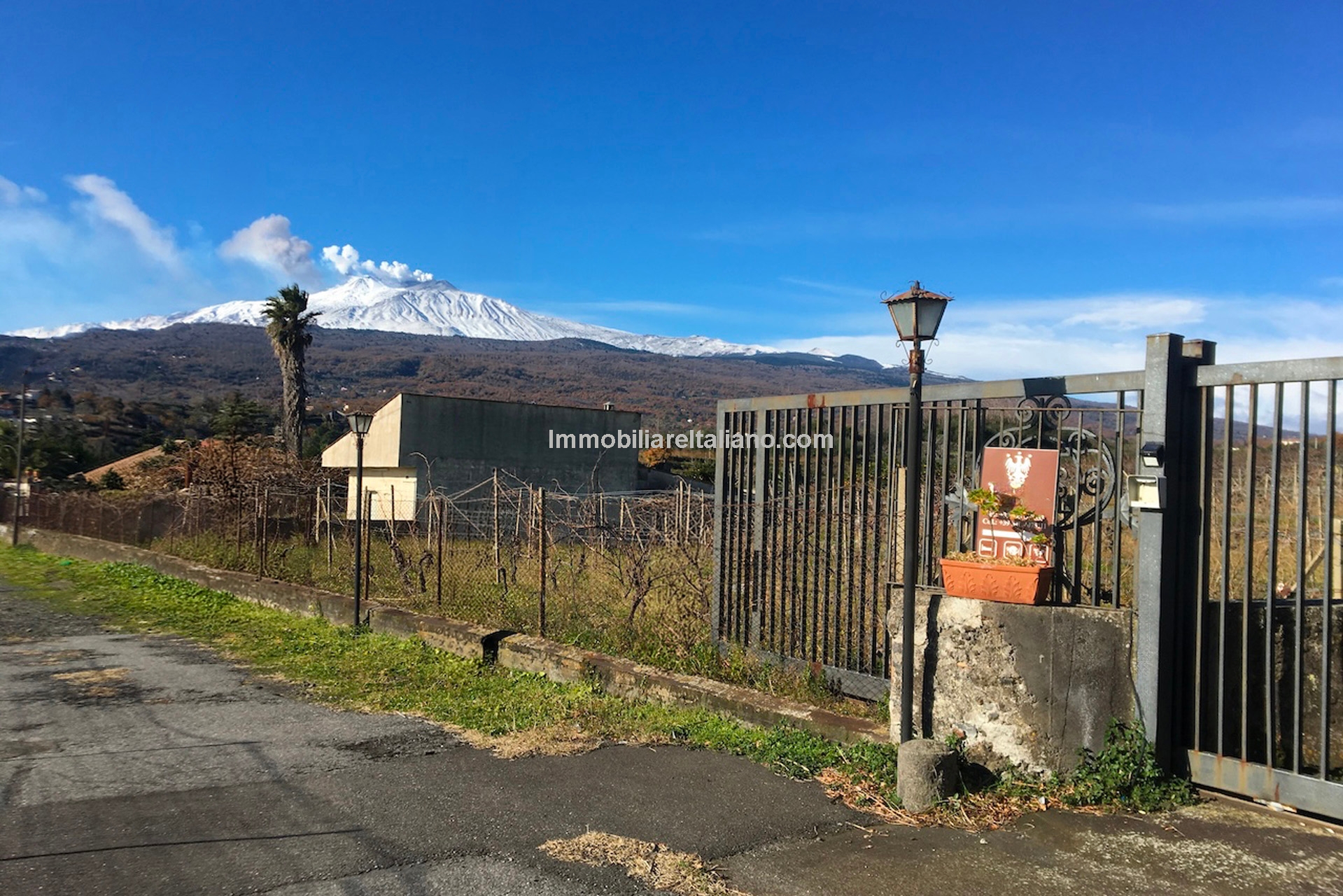 This wine and farm estate for sale is located in Piedimonte Etneo, in the province of Catania, just below Mount Etna. The property extends over 11.3 hectares and offers panoramic views of the Mediterranean Sea and surrounding countryside, with a combination of agricultural production and hospitality use.