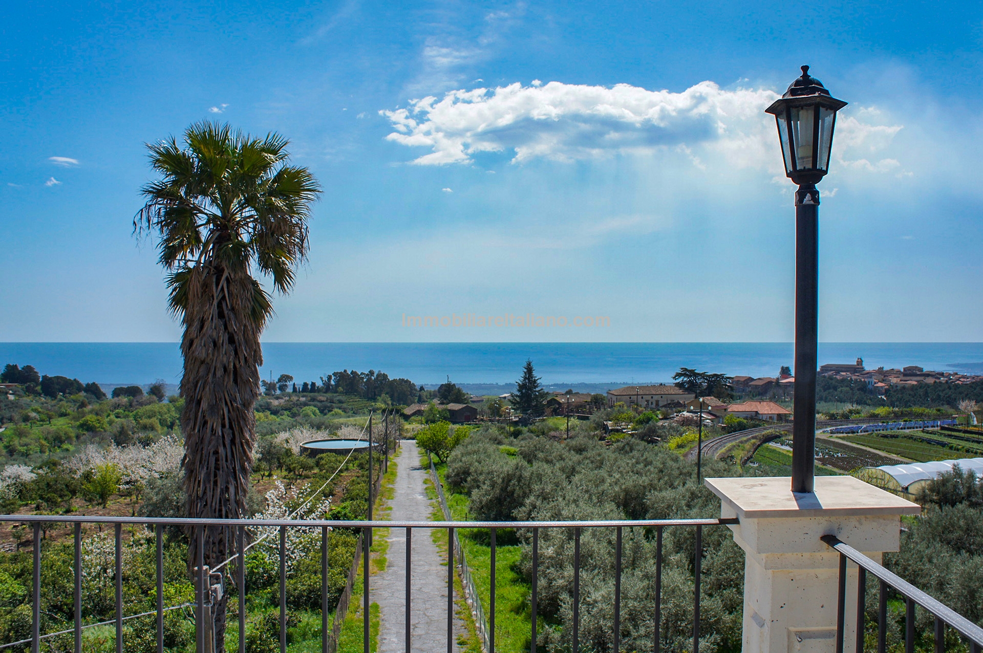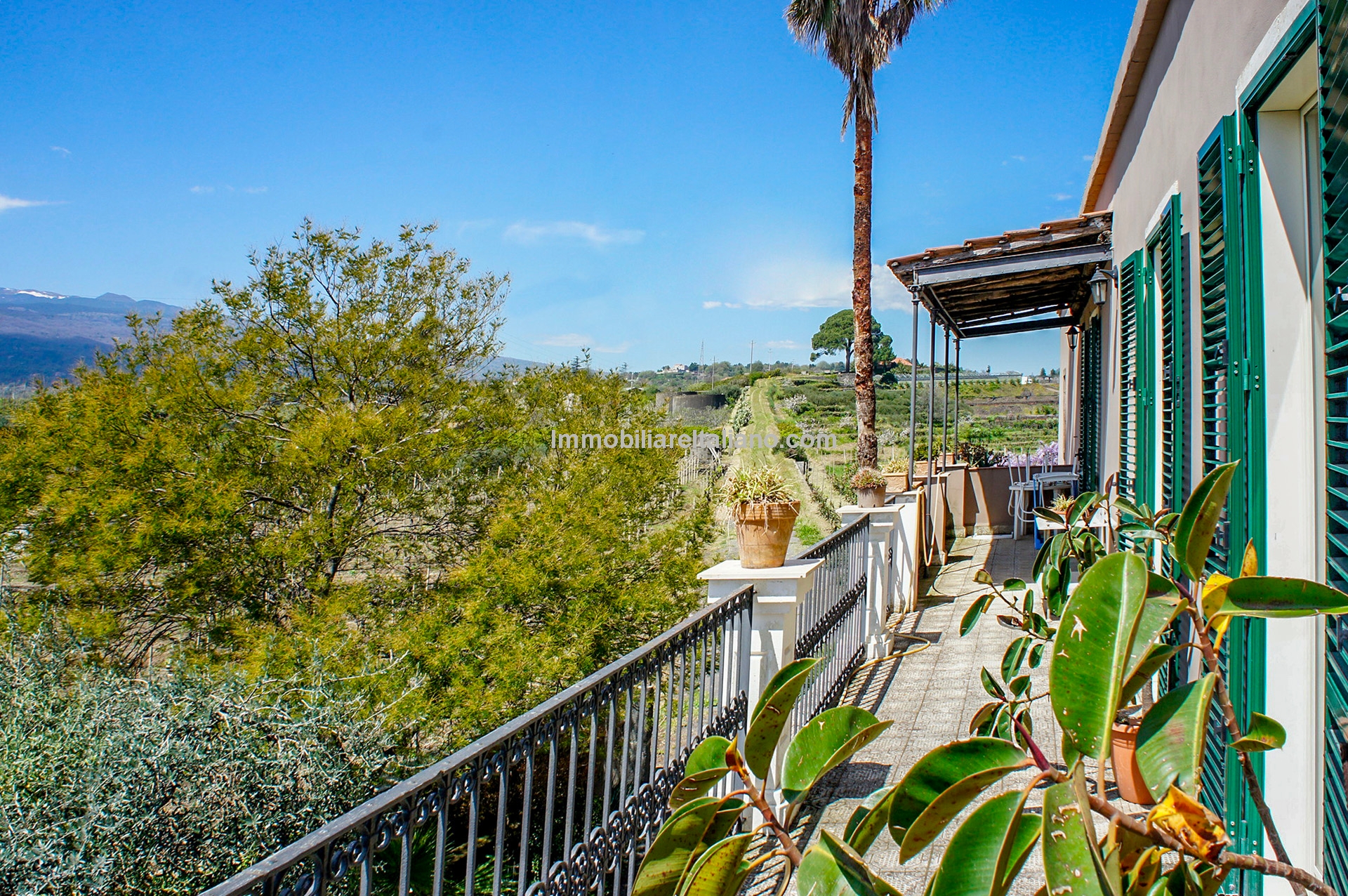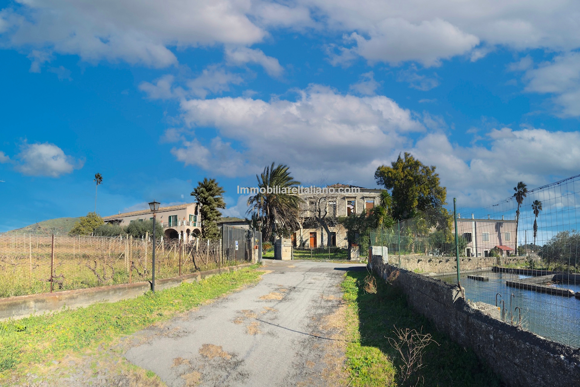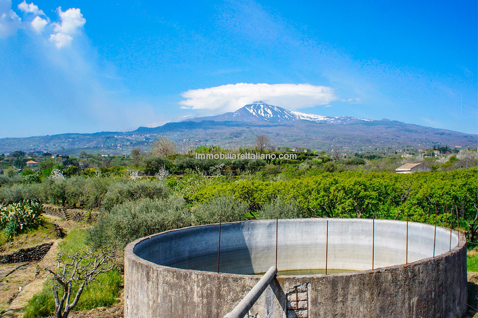 This wine and farm estate for sale is located in Piedimonte Etneo, in the province of Catania, just below Mount Etna. The property extends over 11.3 hectares and offers panoramic views of the Mediterranean Sea and surrounding countryside, with a combination of agricultural production and hospitality use.