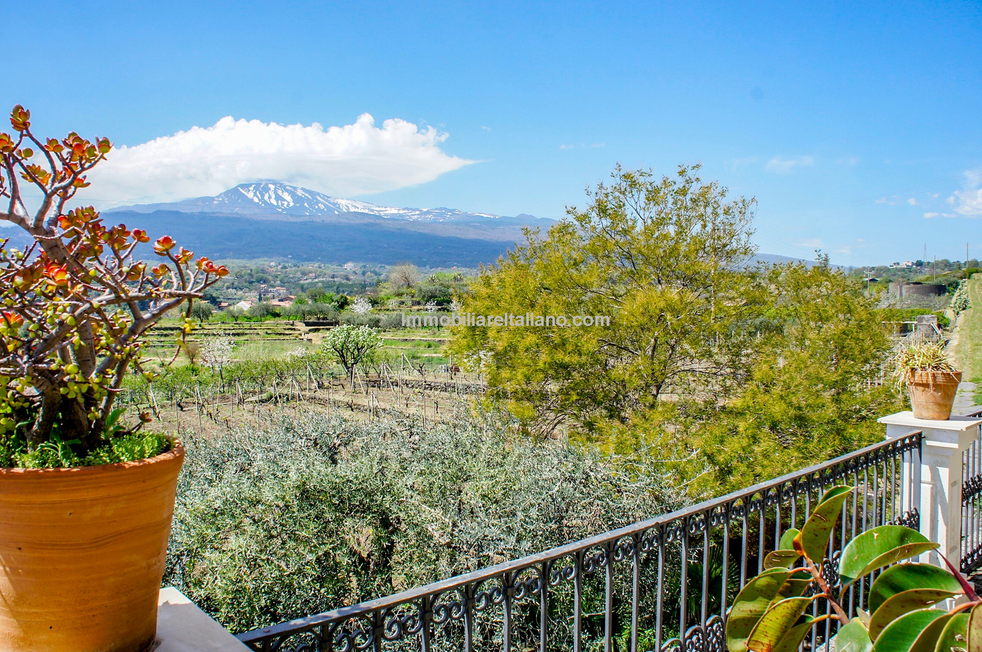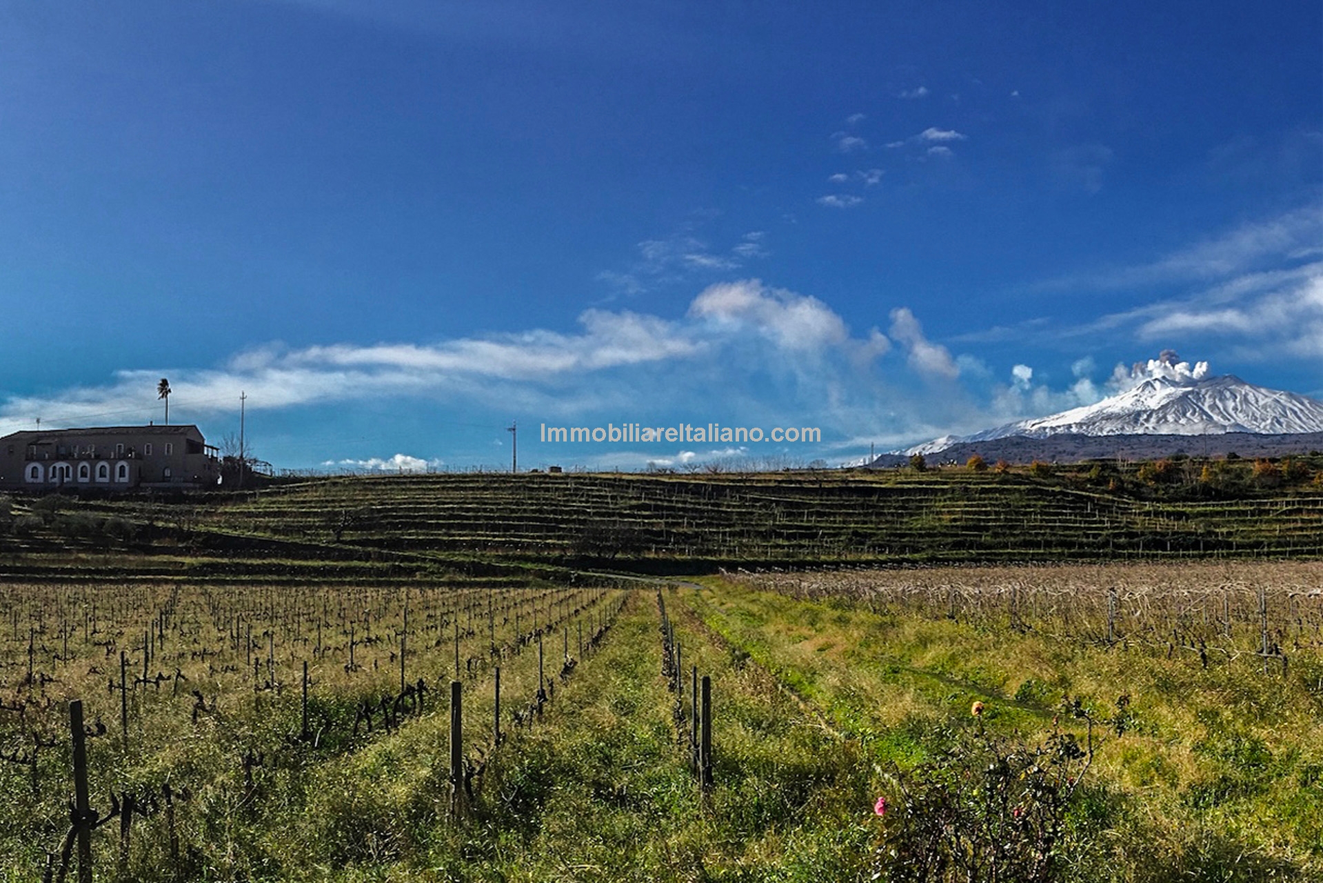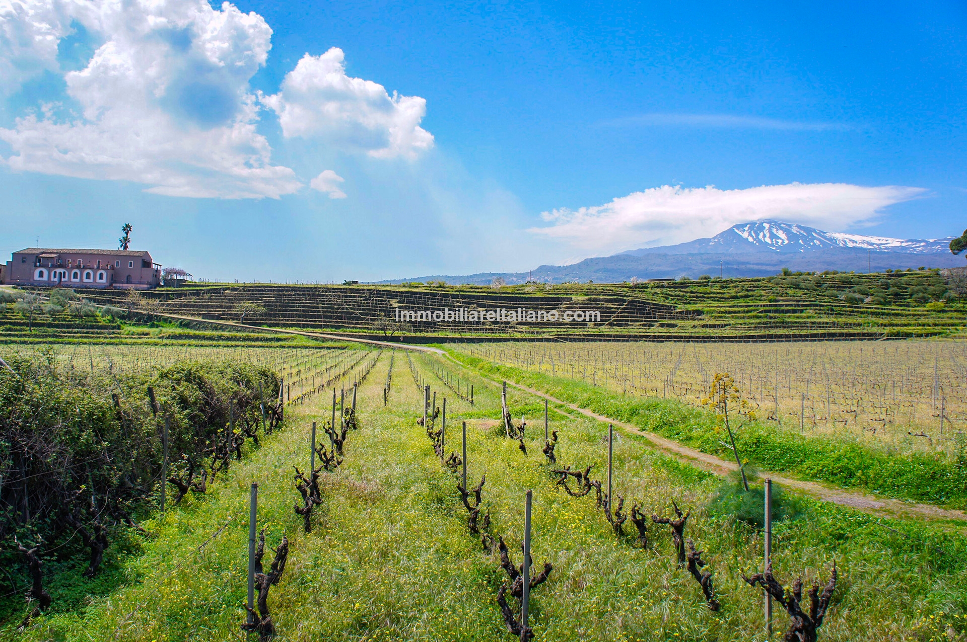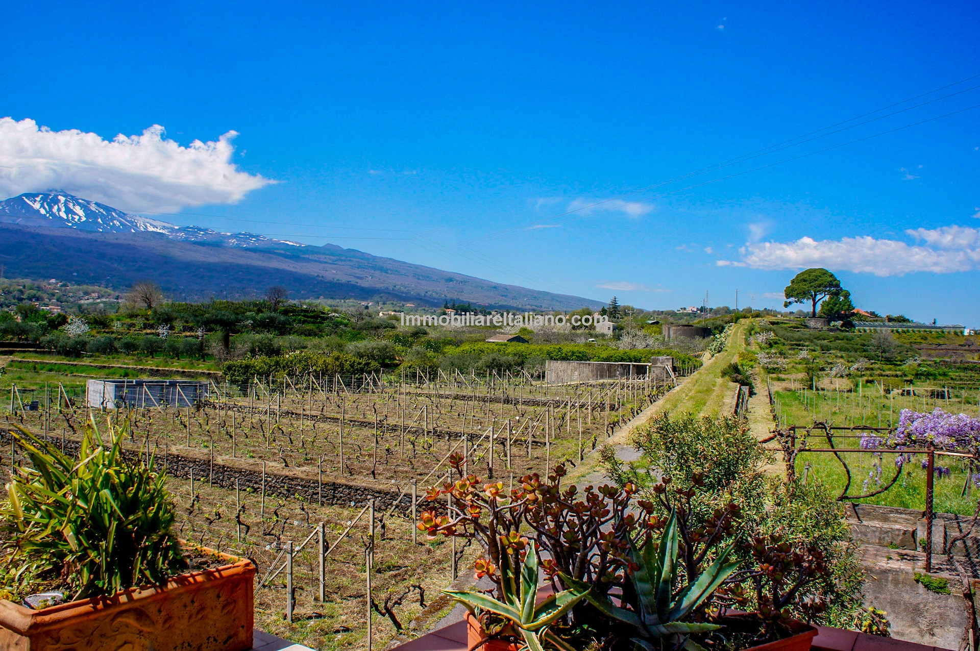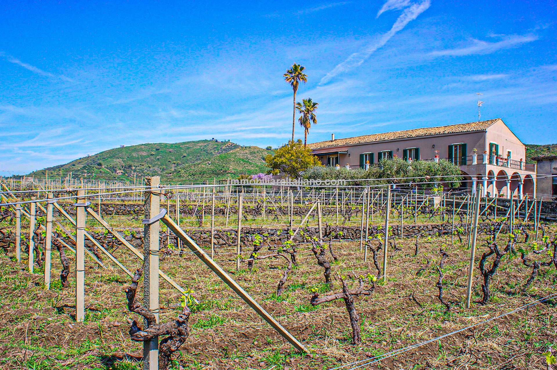 Wine and farm estate for sale in Sicily. View of Mount Etna and the sea. 11.3 hectares with Etna DOC vineyards, olive grove, B&B accommodation and further development potential.