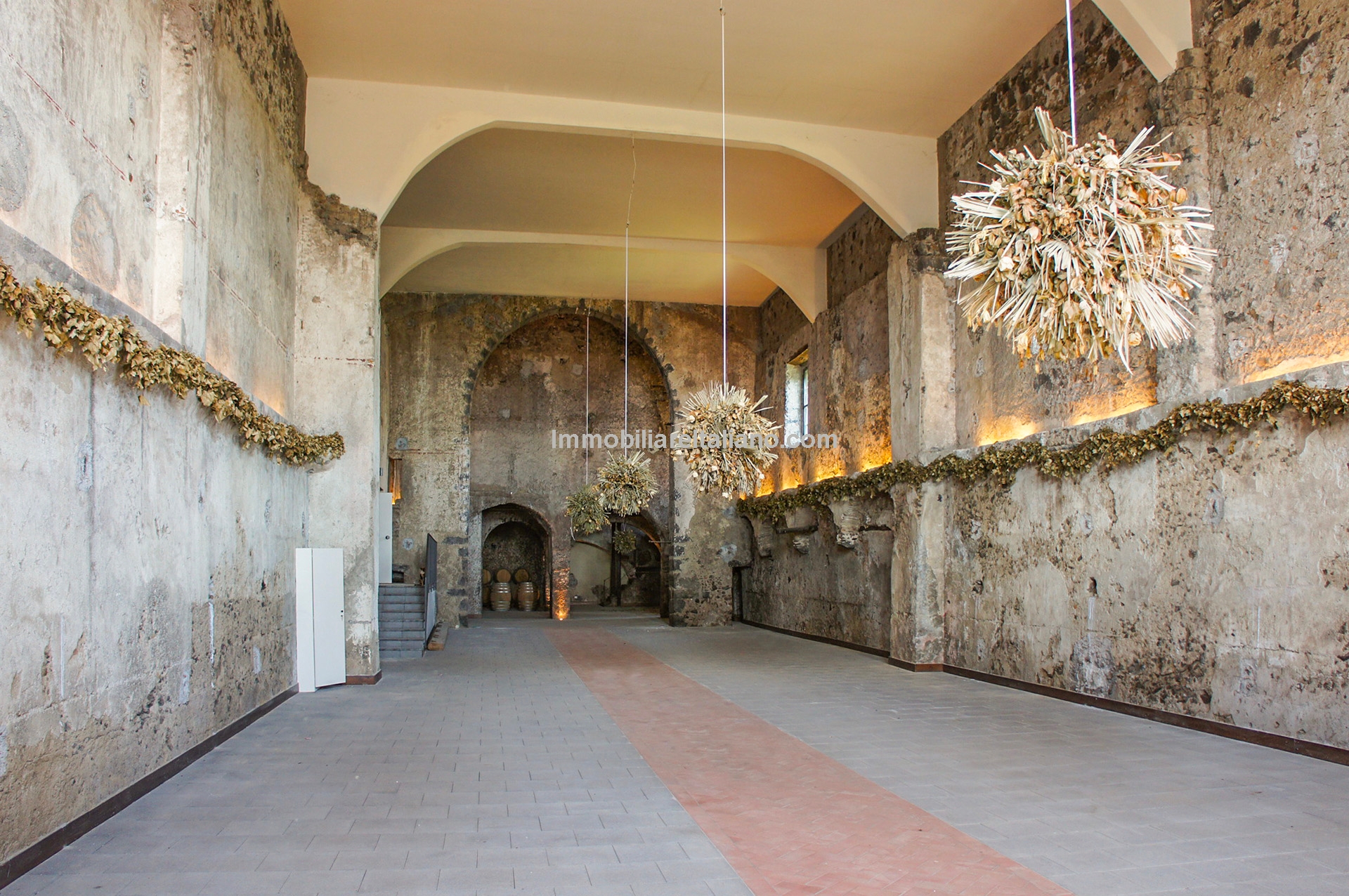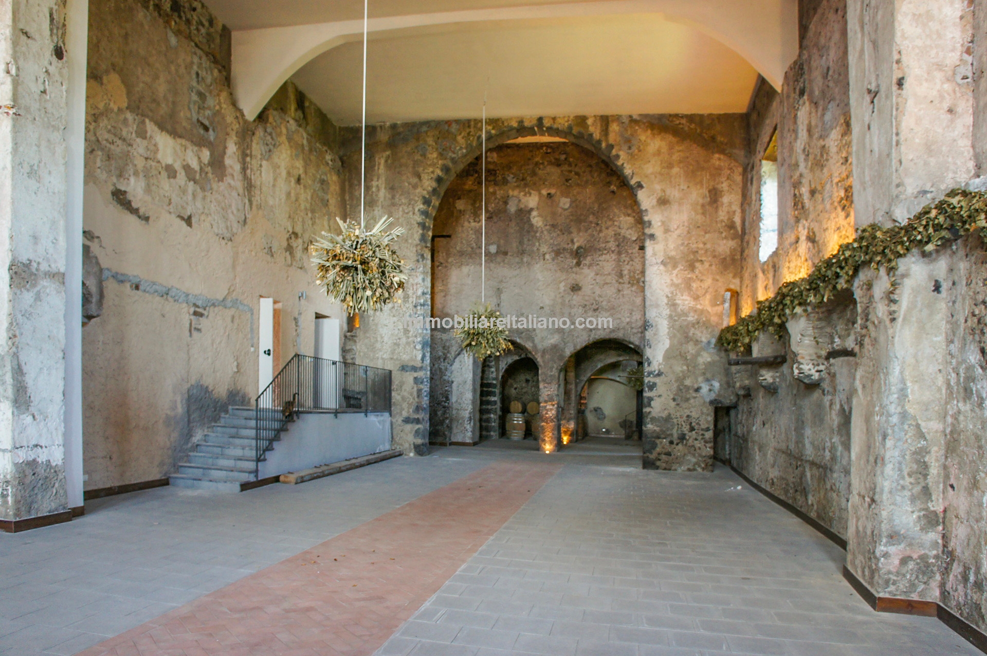 - MAIN FEATURES: Historic cellar, Hispanic buildings, apartments for the guests, vaulted ceilings, wooden beams, original palmento, panoramic terrace, Etna DOC vineyards, olive grove, fruit orchard, parking area