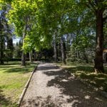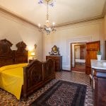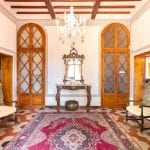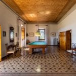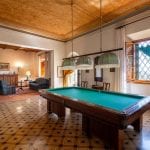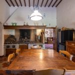 The main villa measures 1,061 sqm and spans four staggered levels. It is in very good condition, retaining its original finishes, including terracotta floors, vaulted ceilings, wood beams, and stone fireplaces. The lower ground level contains the wine cellar and storage areas. The upper ground floor includes an entrance hall, reception room, billiard room, kitchen, and bathroom. The first floor has six bedrooms and a bathroom, while the second floor offers two more bedrooms, another bathroom, and a living room.
