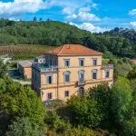 This estate and winery for sale in Italy is located in the hills of Calabria, between the Tyrrhenian and Ionian coasts, in a panoramic position near Lamezia Terme. The property extends across 60.1 hectares and includes a historic 19th-century villa, a modern winery, additional agricultural buildings, and 27 hectares of productive Calabria IGT vineyards. The location, at 500–700 metres above sea level, provides ideal conditions for wine production and offers clear views toward both seas and the Aeolian Islands.